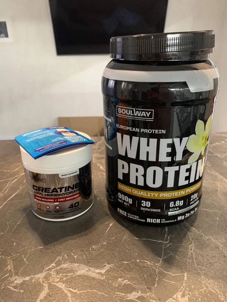 Упаковано качественно 👍все целое, запах и вкус у протеина приятный 😋 Креатин в совокупности даст результат! Покупкой доволен