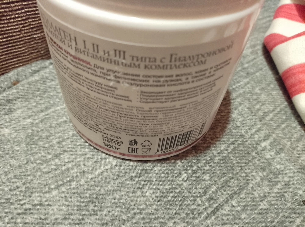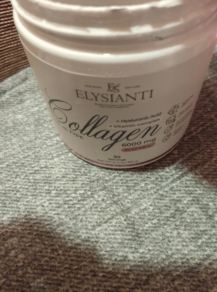 Коллаген от Elysianti - на банке указано,что содержит первый,второй и третий тип,плюс полноценный * довесок*-гиалуроновая кислота и внушительное,в процентном отношение количество витаминов.вкус для меня приторный,но если все то что заявлено на упаковке действительно содержится,то это не имеет значения .Растворяется нормально после интенсивного взбалтывания,мерная ложечка есть.Чтобы оценить эффект именно этой добавки конкретного производителя ее нужно пить хотя бы пару месяцев а так все нормально и упаковано отлично.
