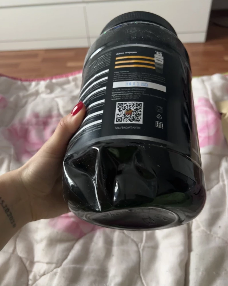 Упаковка помятая и на половину открытая пришла. Это немного расстраивает. А так, ну протеин, как протеин. С бананом-вкусно.
